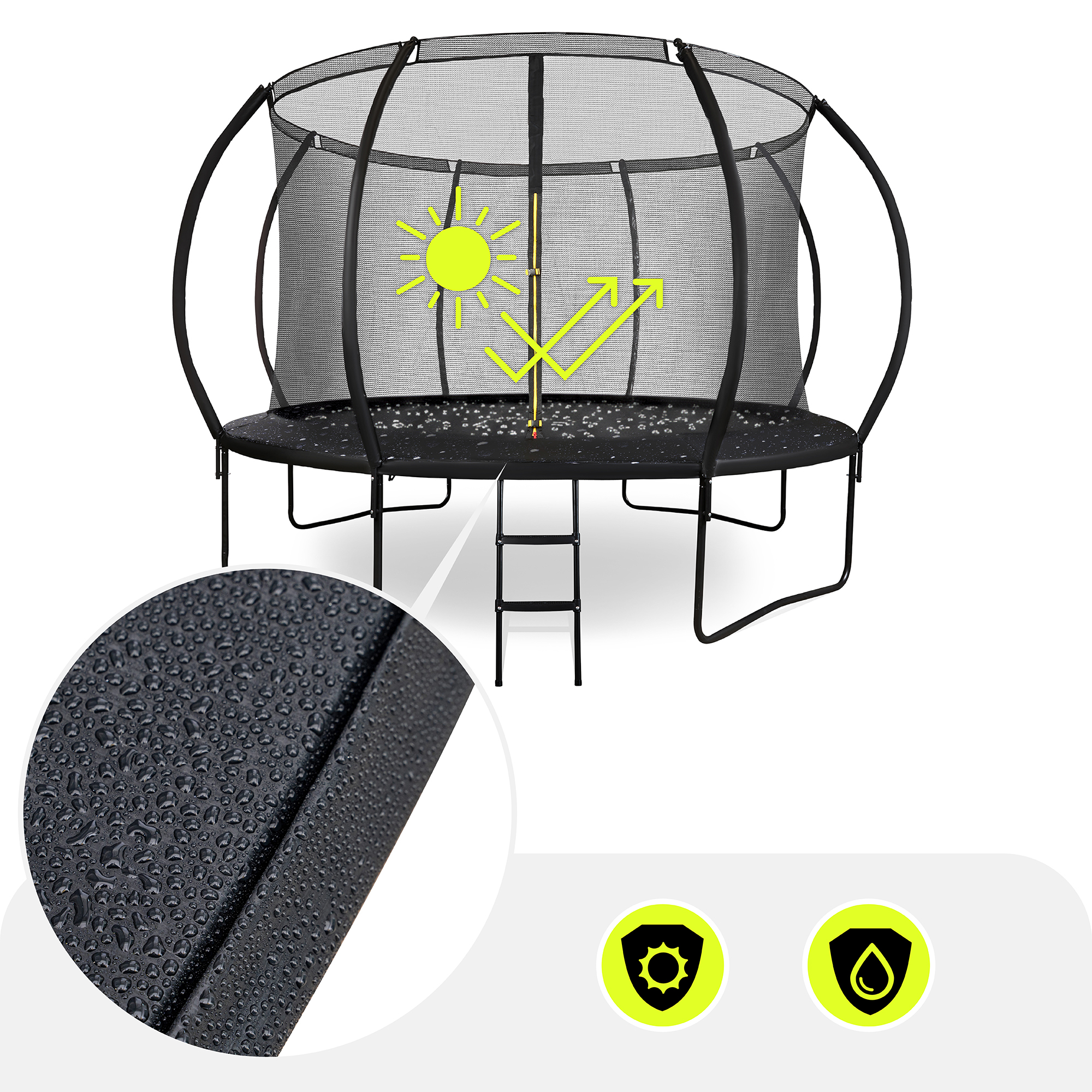 XXL градински батут за деца HyperMotion - 366 см 12 фута - със стълба и вътрешна мрежа - за дома и градината - 150 кг макс