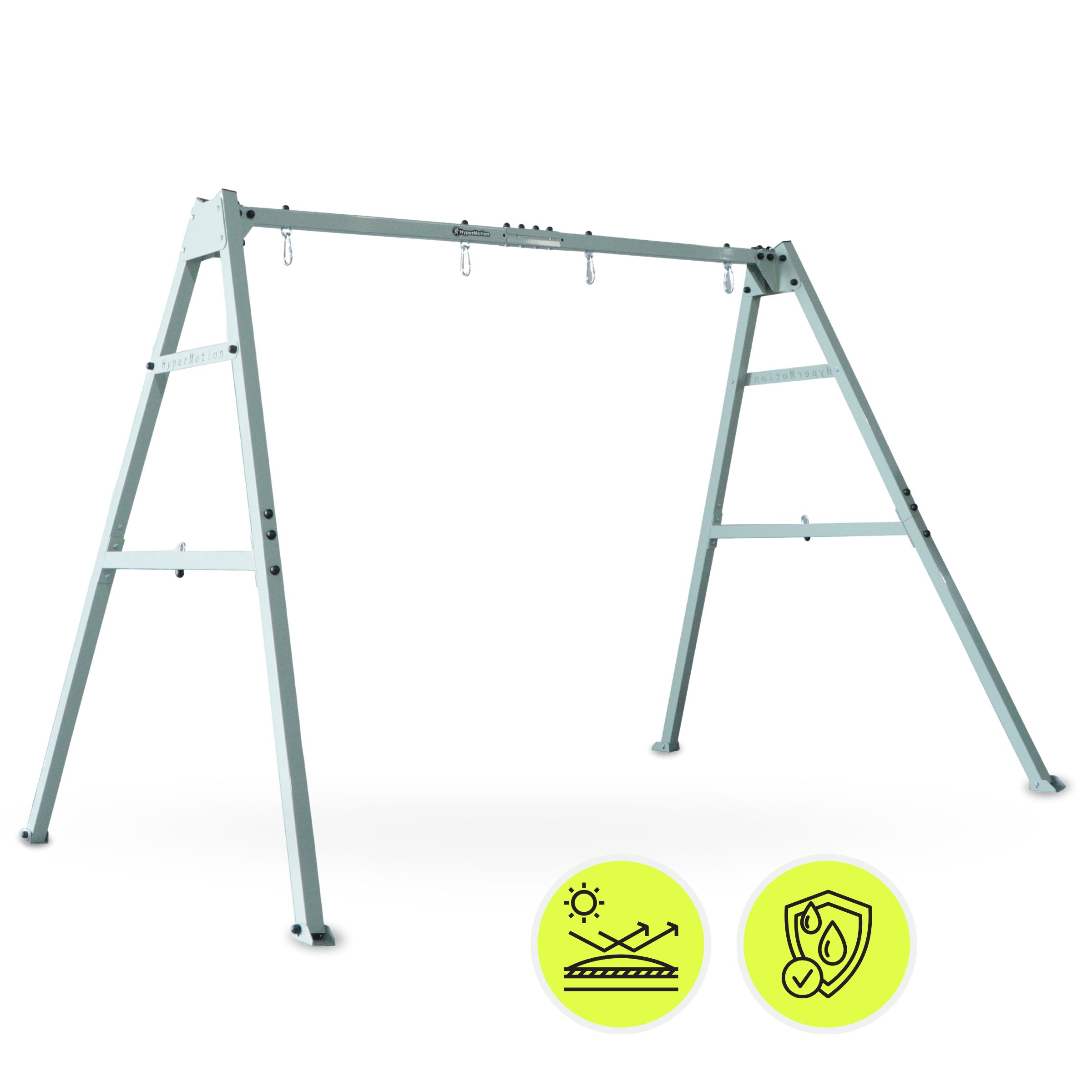 Оборудвана със стоманена рамка, рамката ще осигури на децата Ви не само привлекателно, но и безопасно място за игра. Тя има стабилна и здрава конструкция. Благодарение на стабилната си и здрава конструкция, аксесоарите могат да се използват едновременно от до трима души! Стоманената рамка е идеална за забавление и релаксация. В допълнение към люлките може да се прикрепи и удобен хамак - идеалното място за отдих на чист въздух.