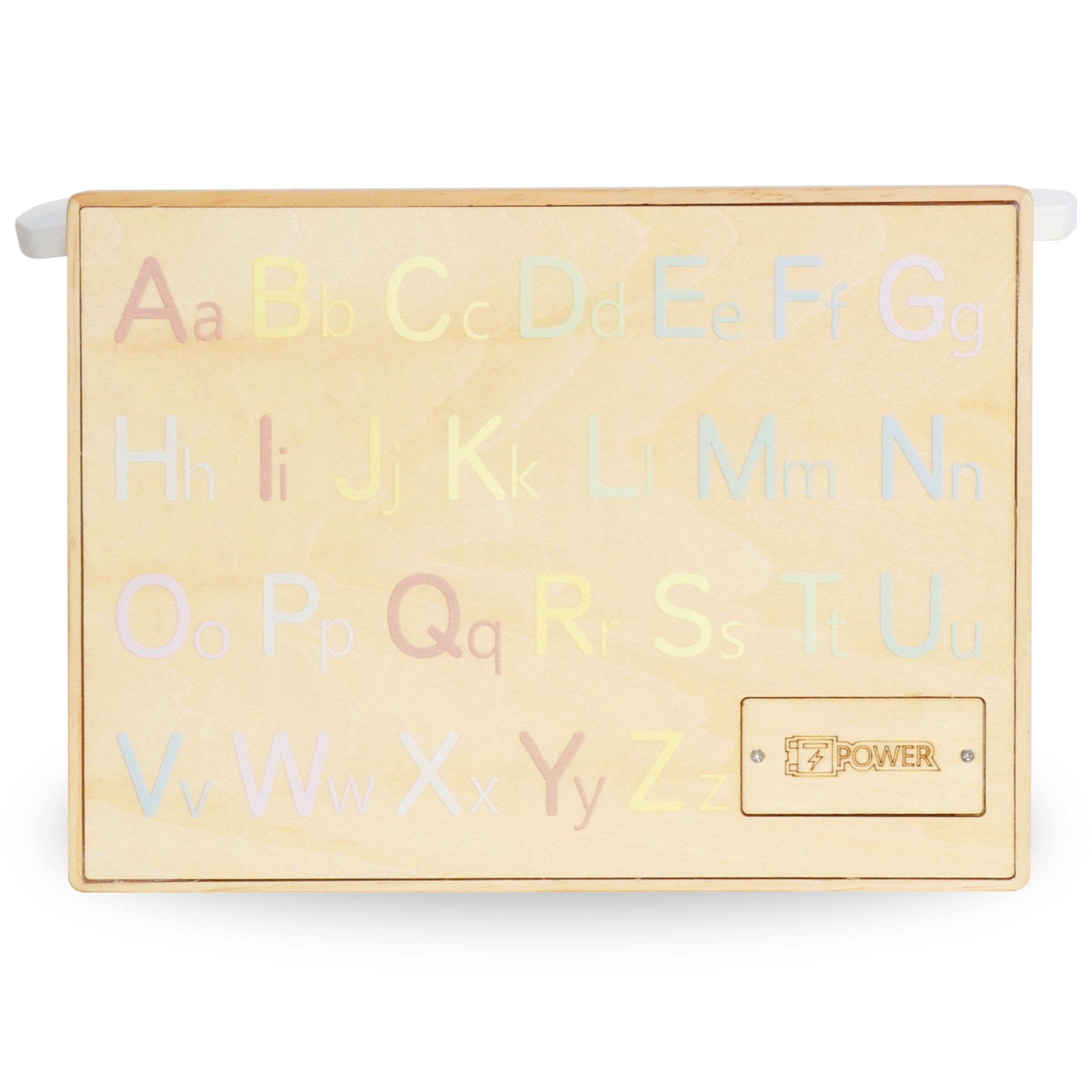 Създадена в духа на Монтесори, тази играчка пленява със своята простота и същевременно функционалност. Големият брой подвижни елементи насърчава малките деца да взаимодействат и ги забавлява за дълго време. Дървената дъска обаче е не само за забавление, но и за изучаване на азбуката. На гърба на дъската са изобразени 26 цветни букви.