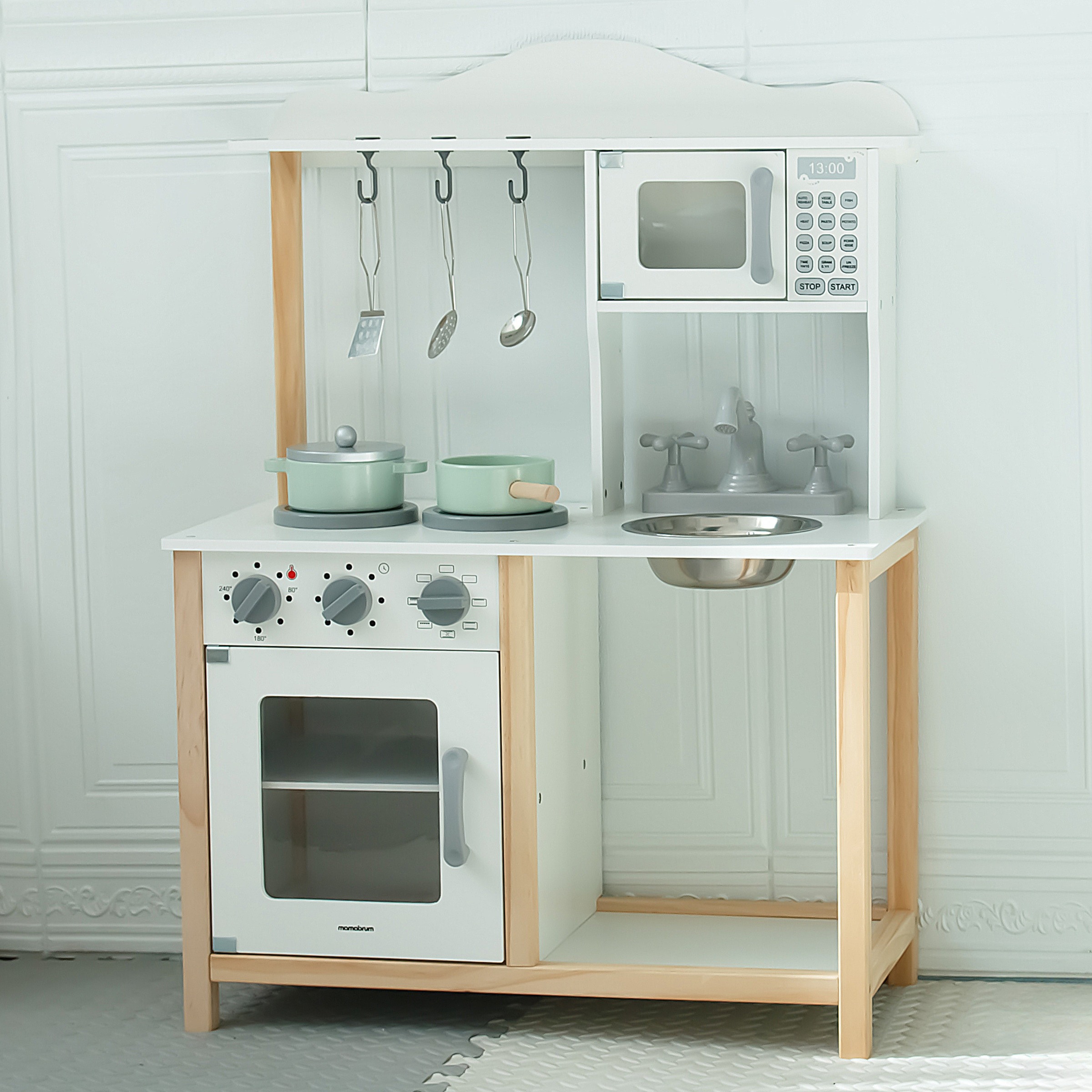 Обича ли детето ви да ви помага в кухнята? Имитирането на възрастни е чудесно начало на творческа игра и същевременно възможност за развитие! Дървената кухня ще бъде уникална декорация за стаята на Вашето дете и ще внесе уютна атмосфера в стаята, превръщайки се в център на детските забавления!