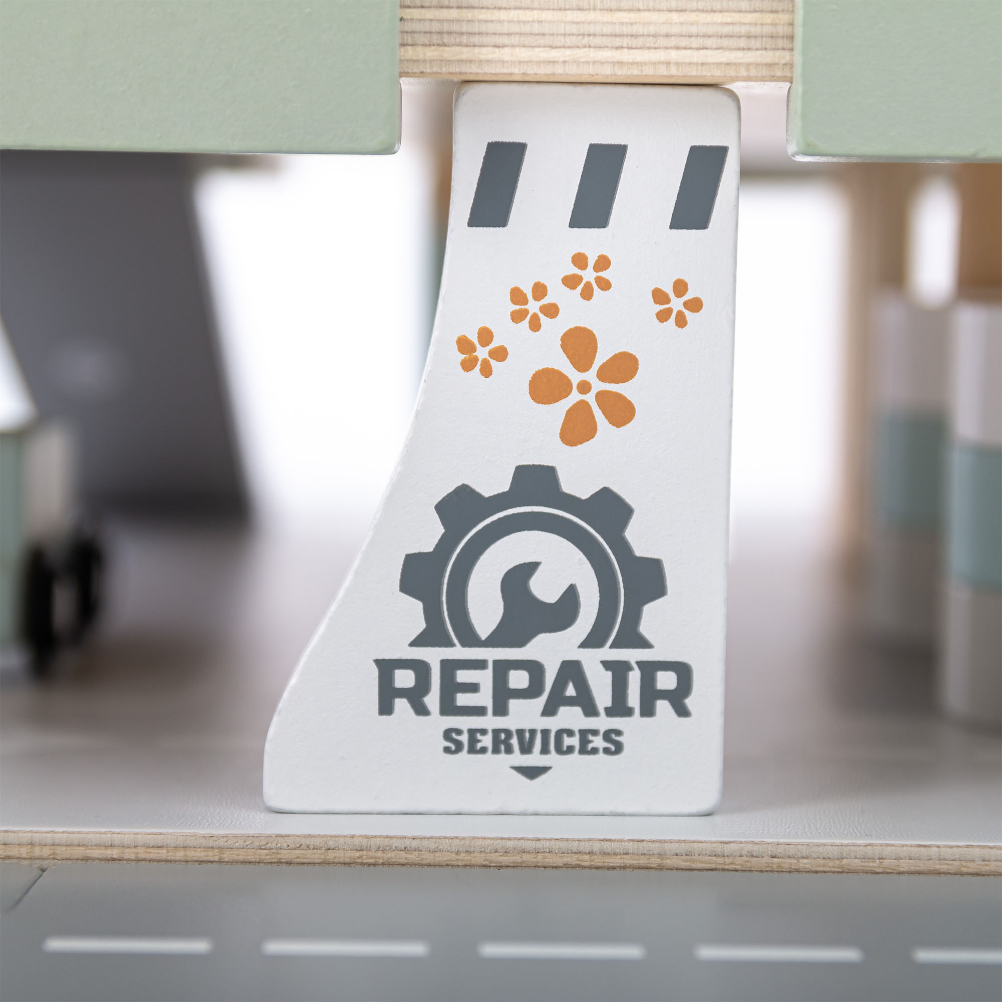 Всяко ниво в гаража предлага нови възможности! Нивата са обозначени с изображения на животни: мечка - ниво 1, слон - ниво 2, лъв - ниво 3. Автомобилите могат да използват автомивката с движещи се валяци , да зареждат с гориво на бензиностанция или да се свързват с електрическа зарядна станция. Бариера на входа, светофари и пътни знаци добавят реализъм към преживяването, докато площадка за кацане на хеликоптер на покрива отваря вратата към въздушни приключения. Пътните пъзели ви позволяват да създавате улици и пътища за достъп, а допълнителни зони за ремонт и обслужване учат на поддръжката на превозните средства.