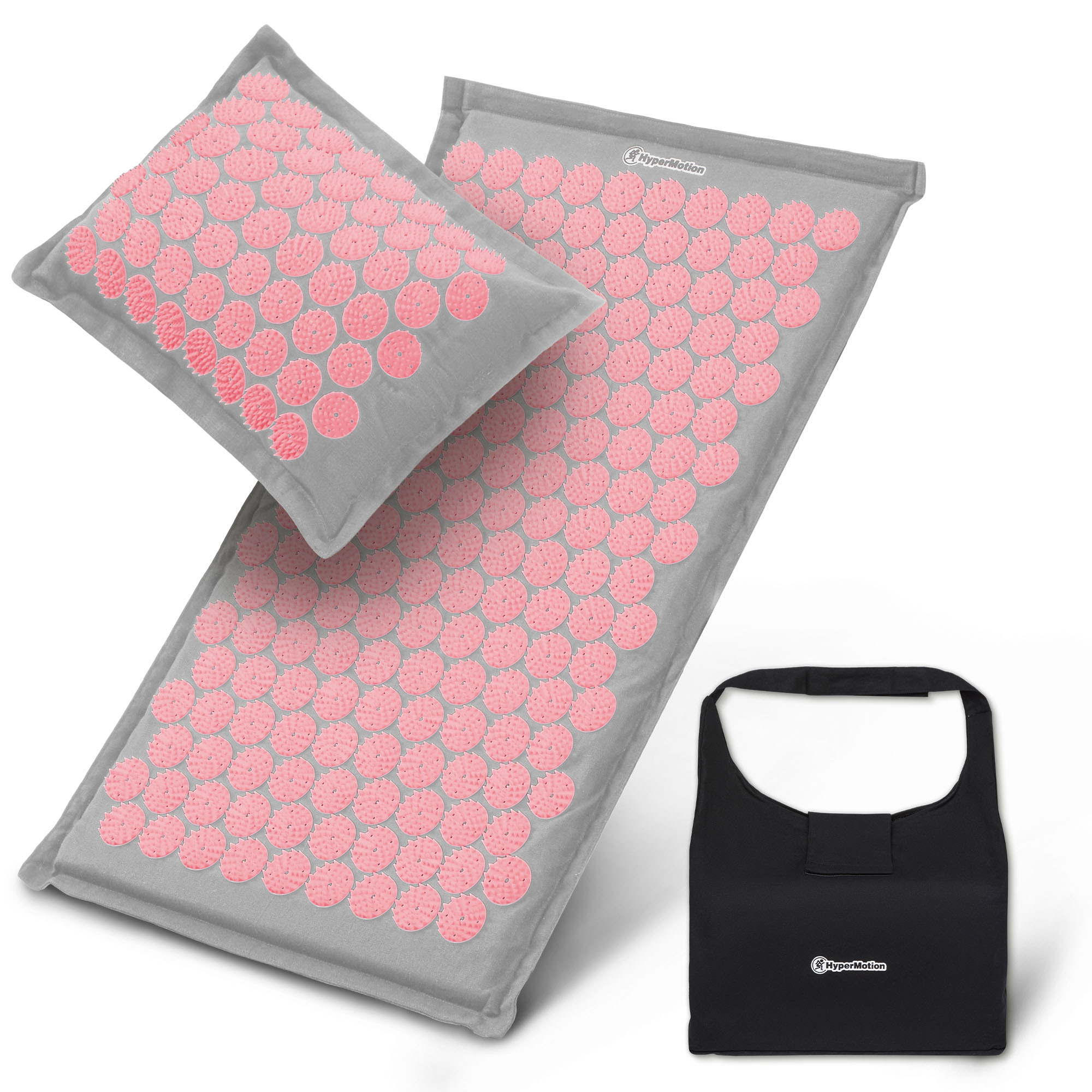 ЕКО ленена постелка за акупресура с кокосови влакна и възглавница от елда – 68 см HyperMotion сива и розова