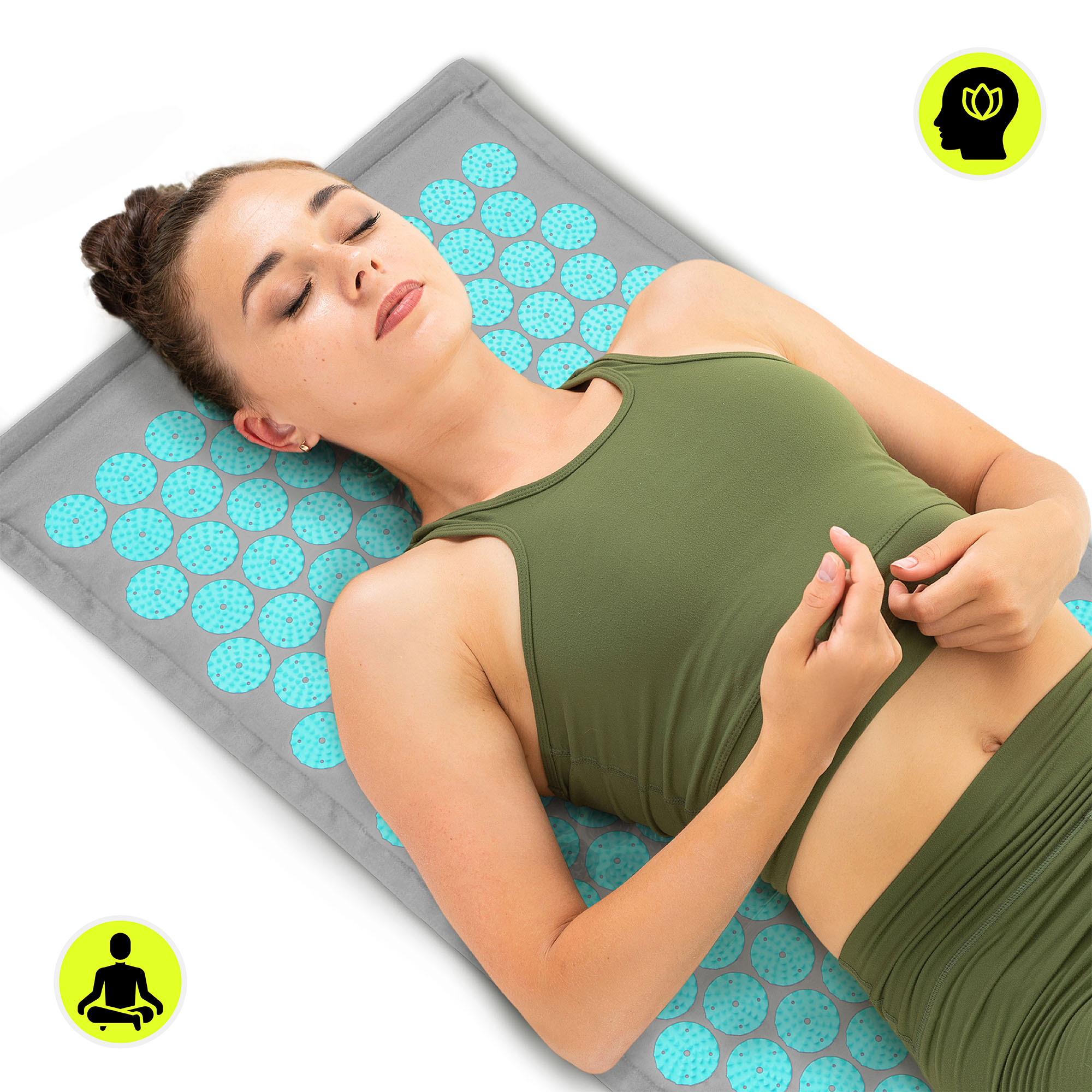 ЕКО ленена постелка за акупресура с кокосови влакна и възглавница от елда – 68 см HyperMotion сиво-ментово