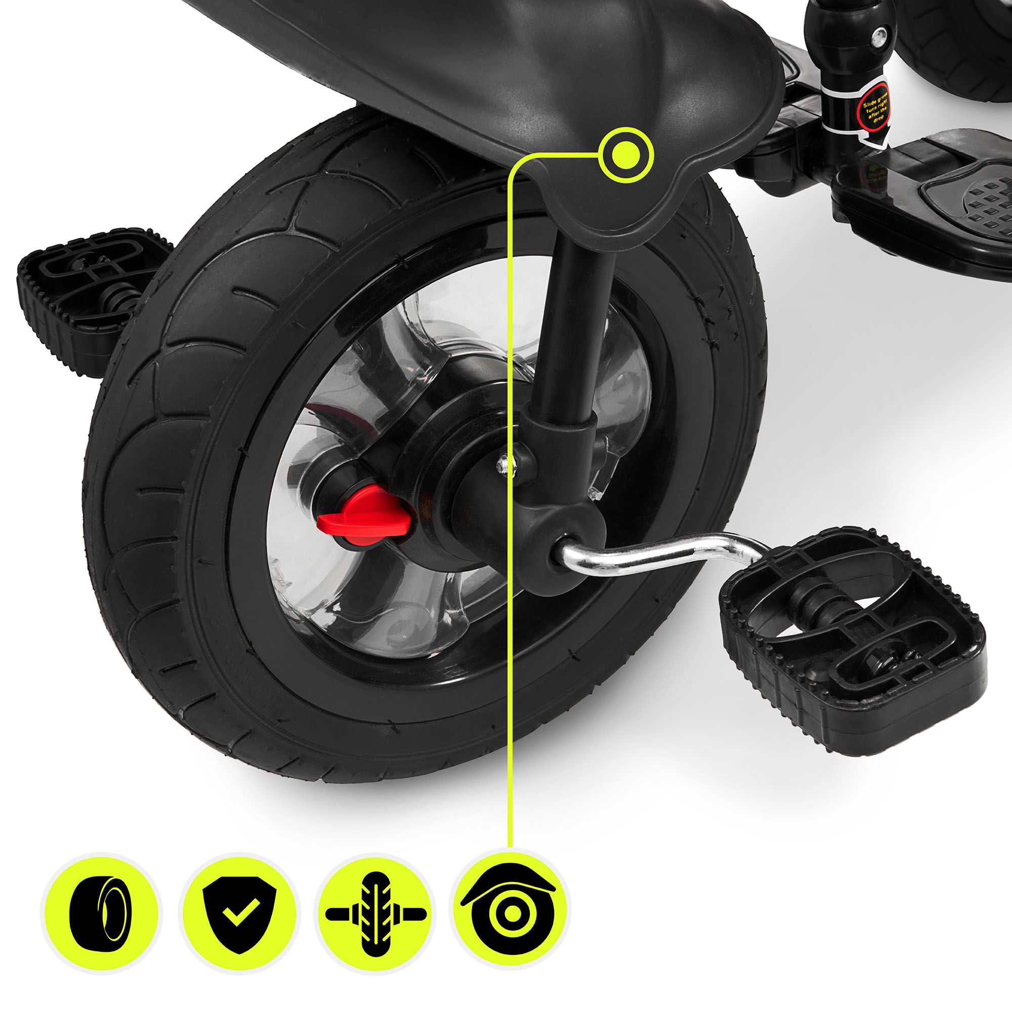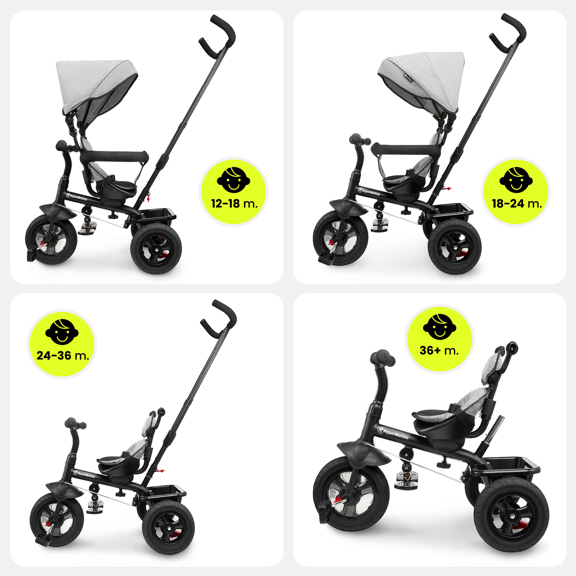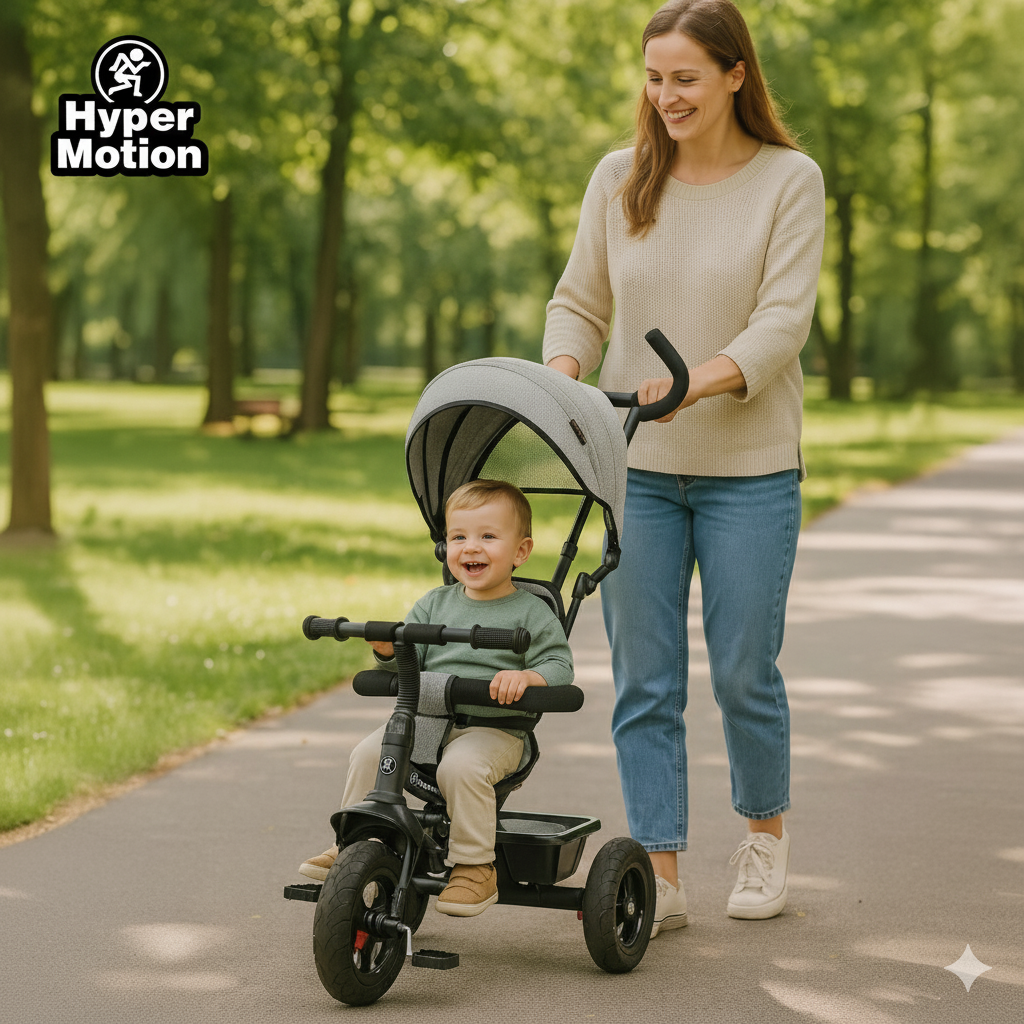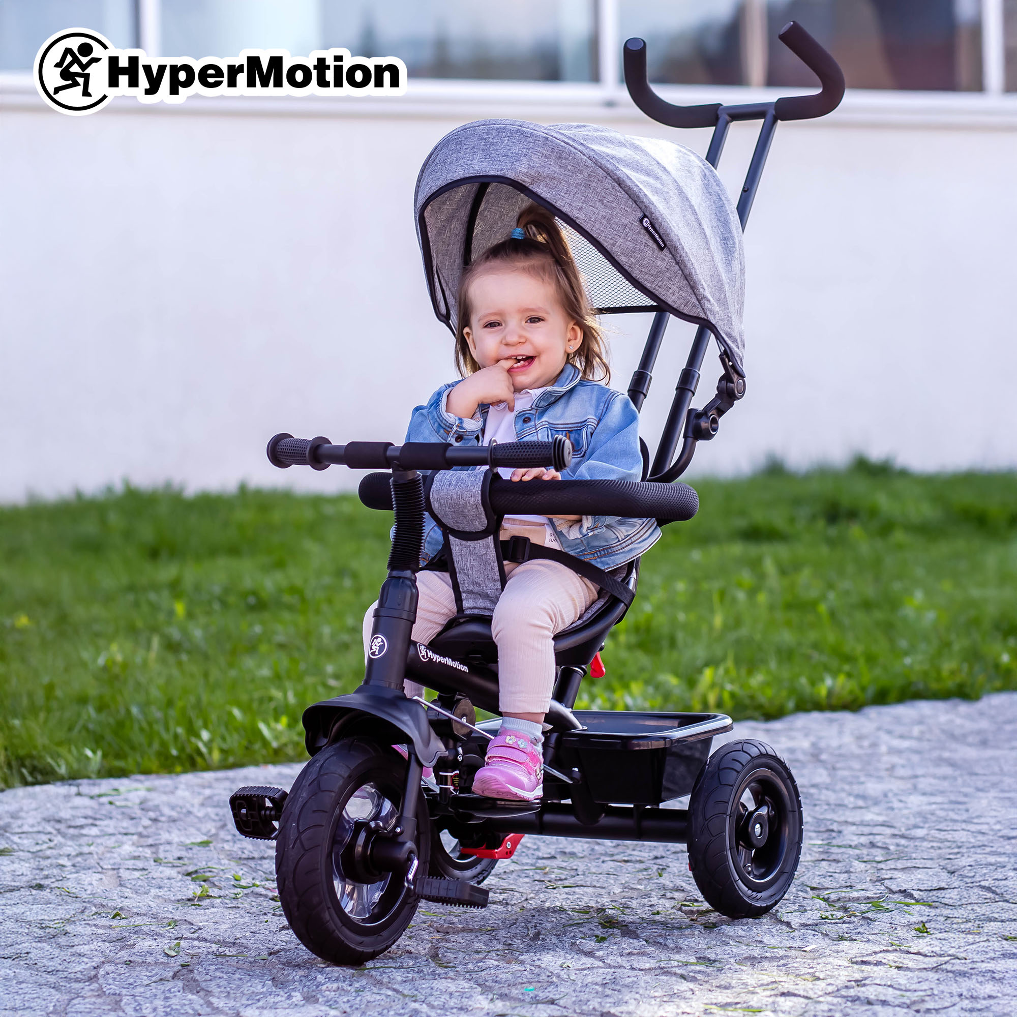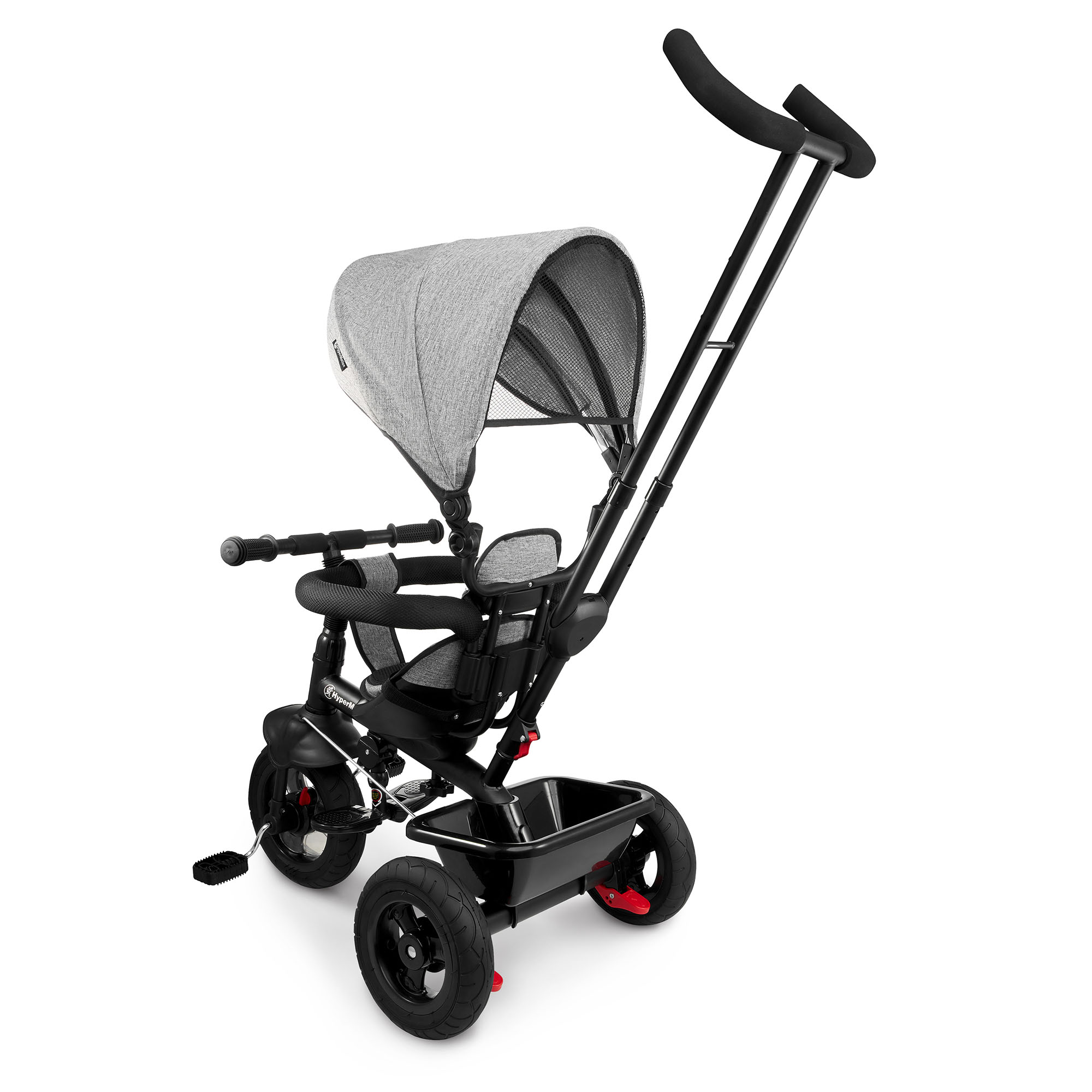 Триколка за деца от 1 до 4 години - TOBI FREY - сив цвят - въртяща се - помпени колела + бутало